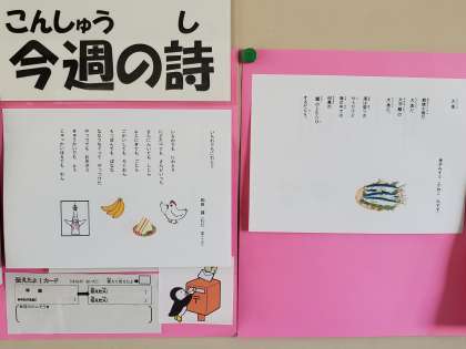 今週の低学年の詩は、「いちわでもにわとり(和田 誠)」、高学年の詩は、「大漁(金子みすゞ)」です。