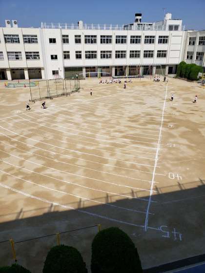 今日も朝から日差しが強いなか、熱中症対策と感染症対策をとりながらソフトボール投げを頑張っていました。先生がお手本で投げると、「オオーッ!」と歓声をあげる子どもたちでした。