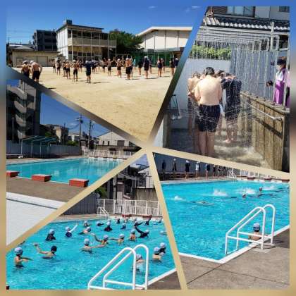 子ども達にとって久しぶりの学校でのプールです。水慣れから5年生の水泳が始まりました。