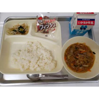 トウバンジャンのピリッとした辛みでご飯がすすみました。はるさめのツルツルした食感も好評で、完食したクラスが多かったです。