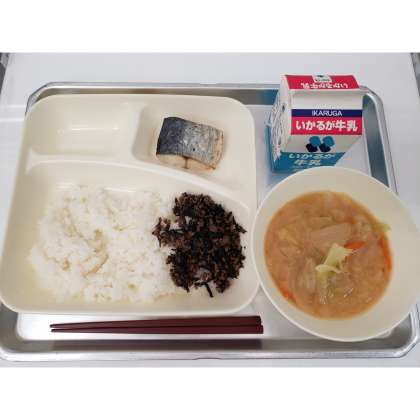 料理酒で下味をつけた牛ひき肉と戻したひじきを炒めて甘辛く味付けしたら、みじん切りにした大葉を加えてさらに炒めています。ついついご飯を食べすぎてしまう献立です。