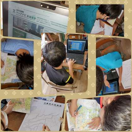 3年生の社会科の授業の様子です。大阪市の学習を終えて、自分でわかったことや、さらに知りたいことを、教科書で振り返ったり、地図やタブレットで調べたりします。そして、調べたことを白地図にまとめていきます。どんな白地図ができるでしょう。楽しみです。