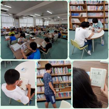 図書館前の掲示です。なかでは、6年生が静かに本を読んでいました。