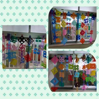 色紙で、「ちょきちょきかざり」をつくりました。