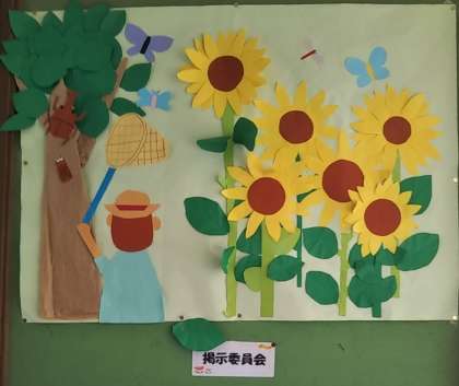 掲示委員会の掲示が、7月になり夏らしい掲示に変わりました。