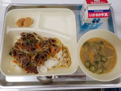 「今日は牛丼でーす!」給食を取りに来た子どもたちに声をかけると、きまって「やったー!」と返事があるほどの、大人気の献立です。