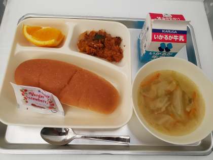 じっくりとよく炒めた小麦粉の香ばしさがひきたち、旬のかぼちゃの甘みと、牛ひき肉、豚ひき肉の旨みがとてもよく合うケチャップ味のグラタンです。粉末チーズは使用しておりませんので、乳アレルギーのある児童も食べることができます。