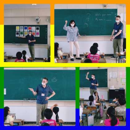 英語の歌を歌ったり、ペアでじゃんけんをして英語で自己紹介をしたり、色のカードを使ってクイズをしたりして、子ども達はとても楽しそうに英語に触れていました。