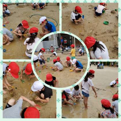 生活科で「どろんこあそび」をしました。川をつくったり、道をつくったり、楽しく活動していました。