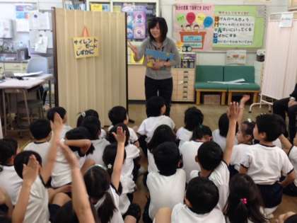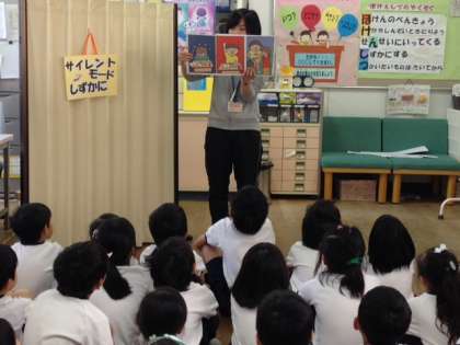 4月9日の6年生を皮切りに、4月20日の1年生まで各学年順番に年度初めの発育測定を行っています。今日は、2年生が発育測定を行いました。年3回実施する発育測定ですが、測定の前に保健室の阪田先生と佐々木先生が保健指導をします。今回は紙芝居を使って「基本的生活習慣の大切さ」を子どもたちに指導しています。いつも明るく元気なA子さん、いつもいらいらふきげんなBすけさん。いったいどうしてこんな違いがあるのでしょう。二人の暮らしを少しのぞいてみましょう。A子さんは“早寝、早起き、朝ごはん”を守り、登校前には排便もしてきました。一方Bすけさんは昨夜遅くまでゲームをして過ごしました。寝ようとしても気持ちが高ぶっていてなかなか眠れません。睡眠不足で朝も食欲がありません。「さあ、みなさんどちらの過ごし方がいいかな?」との問いかけに「A子さん!」と答える子どもたち。“早寝、早起き、朝ごはん”そして、朝の排便子どもたちはよくわかっています。後は実践あるのみです。ご家庭のご協力も欠かせません。よろしくお願いします。