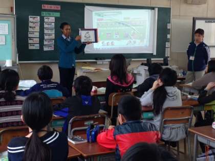 今日はC-NET(City-Native English Teacher)のTamara Richards先生による英語活動が6年生でありました。Tamara先生はJamaica出身で田辺中学校、田辺小学校、南田辺小学校のC-NETとして3年目になる先生です。原則毎週木曜日に本校で5−6年生の英語活動の指導をしてくださいます。今日のテーマは「When is your birthday?」です。January〜December(1月から12月)までの言い方を、子どもたちそれぞれの誕生日に関連させながら練習しました。
