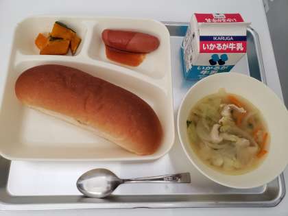 調理員さんが19個もの固いかぼちゃを手切りしてくださいました。ほくほくとした食感と、下味でつけた塩味が甘さを引き立てています。