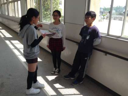 5・6年生の子どもたちはそれぞれ委員会に属し、南田辺小学校の子どもたちが毎日快適に過ごせるように活躍しています。給食委員の子どもたちは順番に今日の献立について放送してくれます。みんなが配膳している頃、職員室前の廊下では、毎日、今日の献立を読む練習を繰り返しする声が聞こえてきます。12時40分、いよいよ本番です。職員室のマイクの前に立ち、分担して原稿を読み上げてくれます。どの子もはっきりとした口調で上手に献立についての説明をしています。
