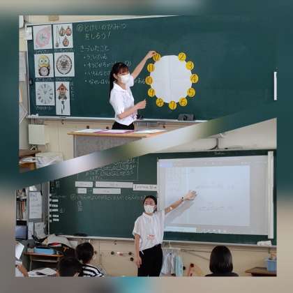 教育実習で来ている二人の先生が、実習授業を行いました。算数の学習でしたが、緊張しながらも、子どもたちの考えを引き出しながら授業を行っていました。