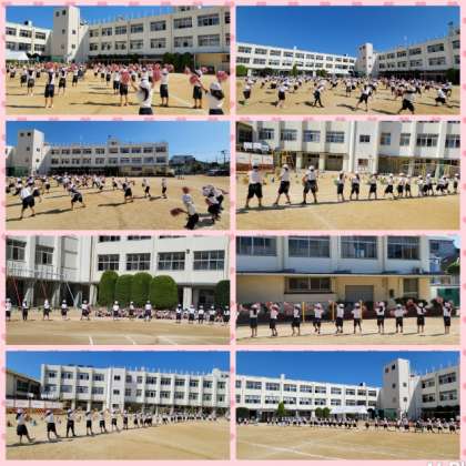 団体演技「We are スーパー1年生」と、かけっこ「走れ!スーパー1年生☆」の練習の様子です。