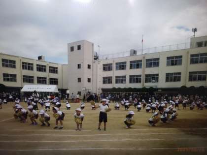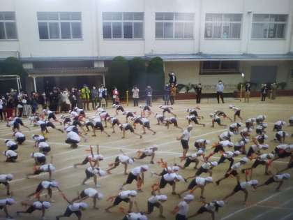4年生の団体演技です。ルパン三世、さざえさんの曲に合わせて、全員のコミカルな動きや集団の大きな動きが圧巻です。