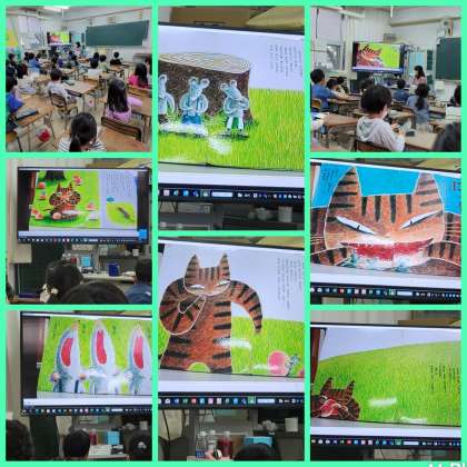 本校では、図書委員会の子ども達による読み聞かせの動画を各学級で見ることになりました。1年生の教室の様子です。みんな真剣に見ていました。