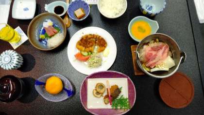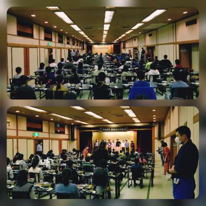 みんなでそろって夕食です。黙食で食べます。しっかり食べましょう。