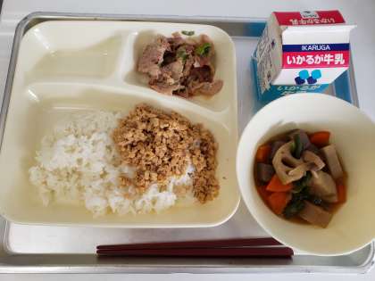 ひきわり大豆とツナを炒め、砂糖、しょうゆなどで味付けしています。