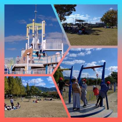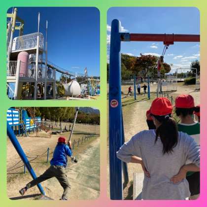 お弁当を食べた後、近くのわんぱく広場で遊びました。いろいろな遊具を堪能できました。この後、予定通り学校に帰ります。
