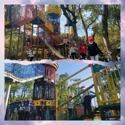 お昼ごはんの後は、公園の遊具で遊びます。たくさん遊んで学校に帰ります。