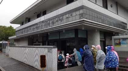 4年生が社会見学に出かけています。少し雨に降られましたが、柏原市立歴史資料館に着きました。