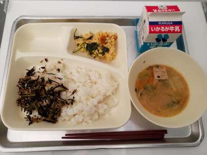ひじき、だいこん葉、ごまを炒めて甘辛く味付けしています。