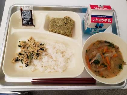 新食品であるささみと、だいこん葉をいため、料理酒としょうゆで味付けしたごはんによく合う一品です。
