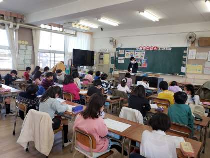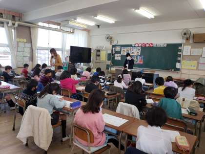 2年生の食育の学習「あさごはんを食べよう」の様子です。