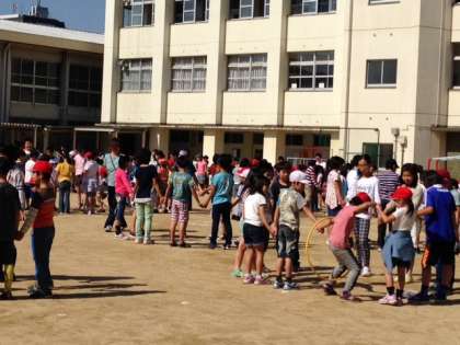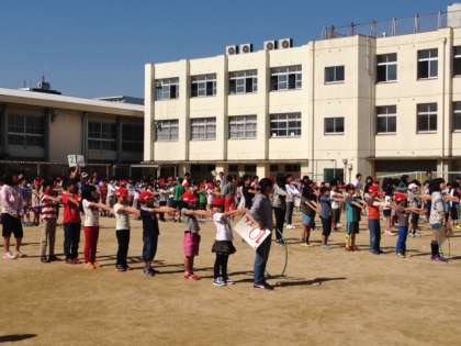 14日(木)、2・4・6年生の縦割り集会がありました。班のメンバーで輪を作り手をつなぎます。手を離さずに輪を速く回したグループの勝ちです。体を使ったゲームでみんな仲よくなれたでしょうか?