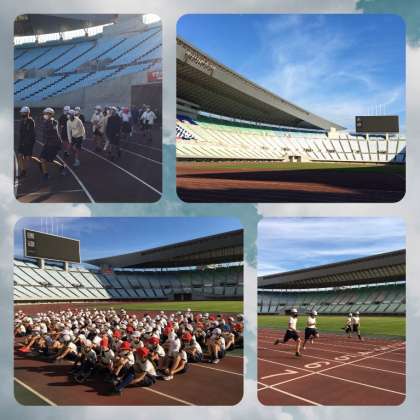 5・6年生が陸上記録会を行いました。各学年ごとにヤンマースタジアムに入り、100m走などを行いました。普段陸上選手が使う競技場のトラックを使ったので、いつもよりも速く走れたと思います。