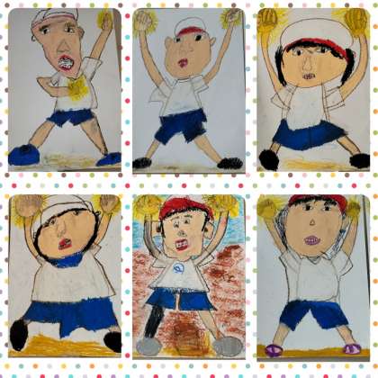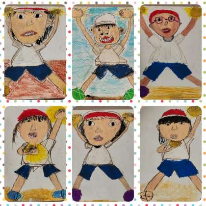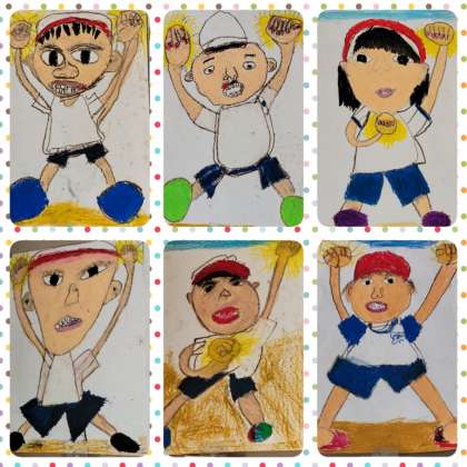 1年生の教室には、運動会のダンスの絵が掲示してあります。