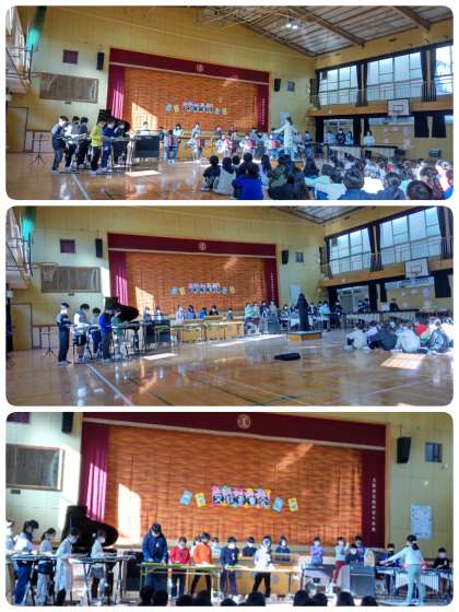 ぞれぞれの学年の1組、2組、3組、4組どうしで、演奏を交流しました。