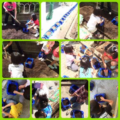先週・・・1年生がアサガオの種をまきました☆☆☆
