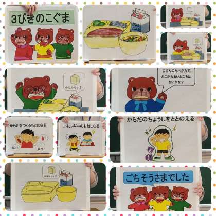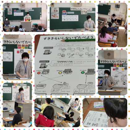 鷹合小学校の栄養教諭の先生による食育の学習がありました。「すききらいしないでたべよう」について、学習しました。