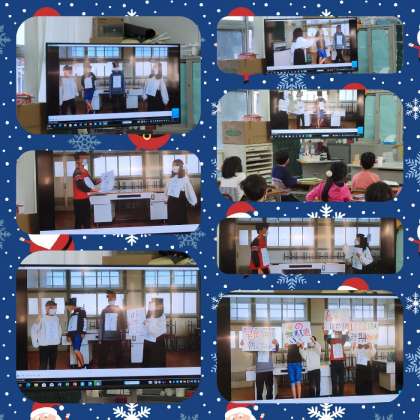 今日は、2学期の終業式でした。開式のことばの後、校長先生の話、運営委員会の冬休みの過ごし方を動画で見ました。最後に校歌を聴いて閉式のことばとなりました。