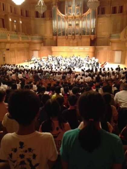 昨日(26日)5年生が音楽鑑賞会で大阪城公園近くにある、「いずみホール」へ行きました。まず、会場に入ると正面のパイプオルガンに圧倒されます。本校も含め六つの学校の子どもたちで会場が埋まりました。歌劇「カルメン」の前奏曲で音楽会の幕が開きました。「赤とんぼ」「南風にのって」のソプラノ独唱や、ファイブ・サックス・コンチェルト「見上げてごらん夜の星を」などを聞かせていただきました。最後に会場の児童全員で「世界が一つになるまで」を歌いました。退場しながら「また来たい!」「もっと聞きたい!」と言っている子どもがいました。本格的なホールで「大阪市音楽団」の方々による本物の音楽に触れることができました。