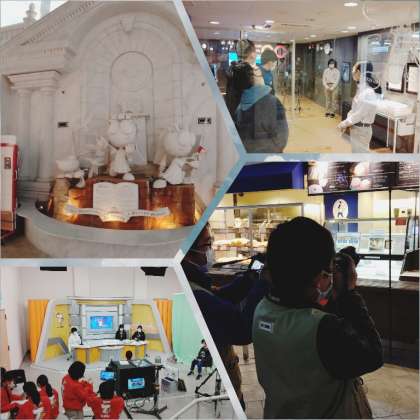 キッザニアは比較的空いていて、子どもたちはたくさんのパビリオン(職業体験)を回って楽し