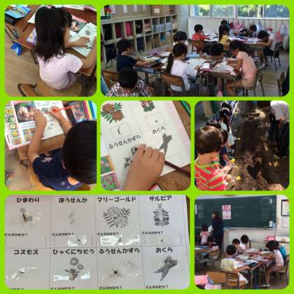 ひまわり、ほうせんか、マリーゴールド、サルビア、コスモス、ひゃくにちそう、ふうせんかずら、おくら・・・たくさんの種類の種を調べました☆☆☆