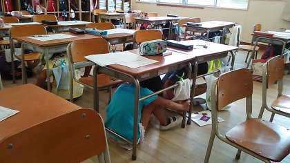 これに合わせて、学校でも地震時の適切な動きなどの訓練をしました。
