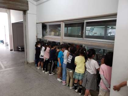 26日と27日の2日間で、1年生が給食室へたんけんにやってきました。