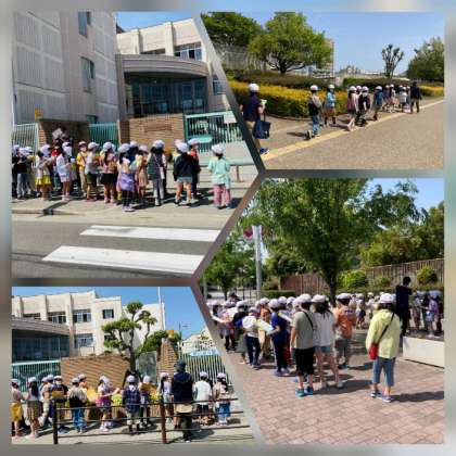 今日は田辺中学校や長居公園など、学校の南側を中心にみんなで観察しました。さわやかな風の中、いろいろな発見をしていました。