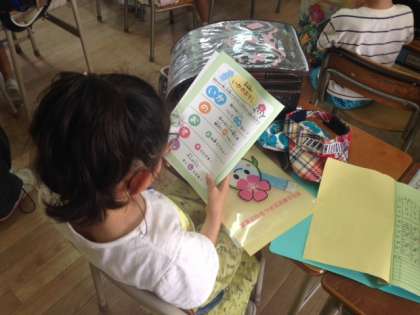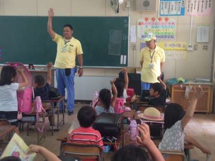 6月初めに、東住吉区役所区民企画課 地域安全・防犯・防災 「なでしこラビット隊」の方が、1年生の各クラスに来てくださいました。安全啓発と、ラビット隊の自己紹介をするとともに、安全啓発グッズとして「ラビット通信、ノート、えんぴつ」を1年生一人一人に配ってくださいました。合言葉の「いかのおすし」(知らない人について いか ない、知らない車には絶対に の らない、 お おごえでさけぶ、 す ぐにげる、大人の人にすぐ し らせる)も教えていただきました。先ずは、“自分の身は自分で守れる子ども”になるようご家庭でも子どもたちにお話してください。