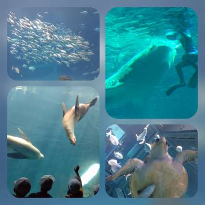 海遊館でたくさんのさかなを見学しました。大水槽のジンベイザメやエイに驚いたり、かわいいアザラシに夢中になったりしました。