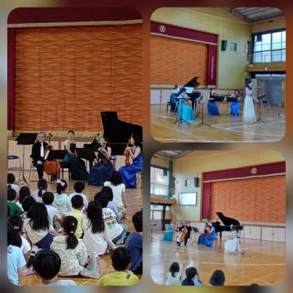 ピアノ、ヴァイオリン、ヴィオラ、チェロ、フルートの楽器演奏と、歌声を聞かせていただきました。