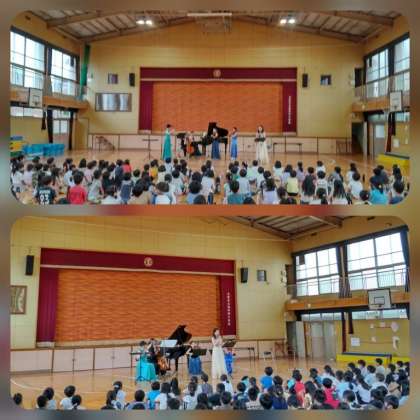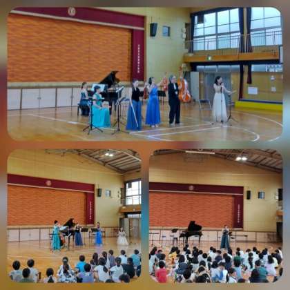 講堂で南田辺コンサートが開かれました。2学年ずつ3公演していただきました。
