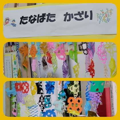 1年生の教室には、「たなばたのかざり」が掲示してあります。