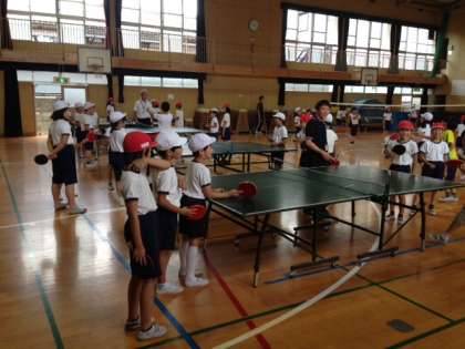 今回は4つのクラブ活動を紹介します。先週の月曜日の活動状況です。講堂では、卓球クラブ(29名)、バドミントンクラブ(26名)が活動していました。