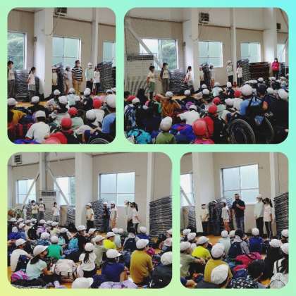 代表の児童のあいさつの後、宿舎の方のお話を聞きました。