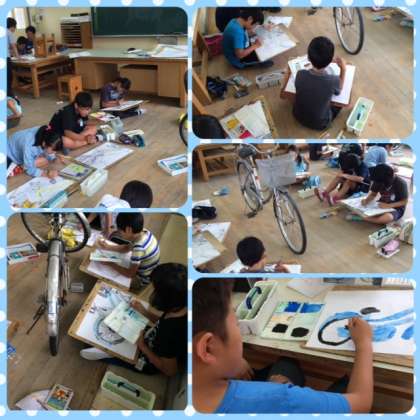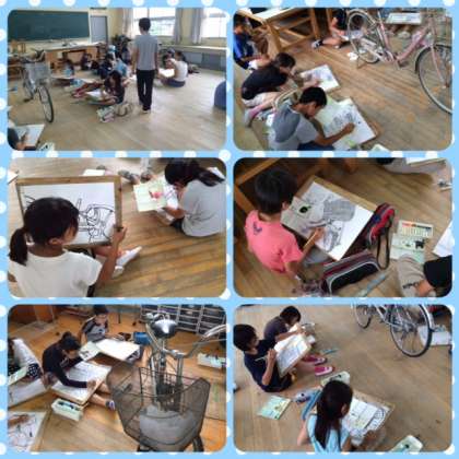 自転車を描いていましたが、昨日色塗りをしました!!!